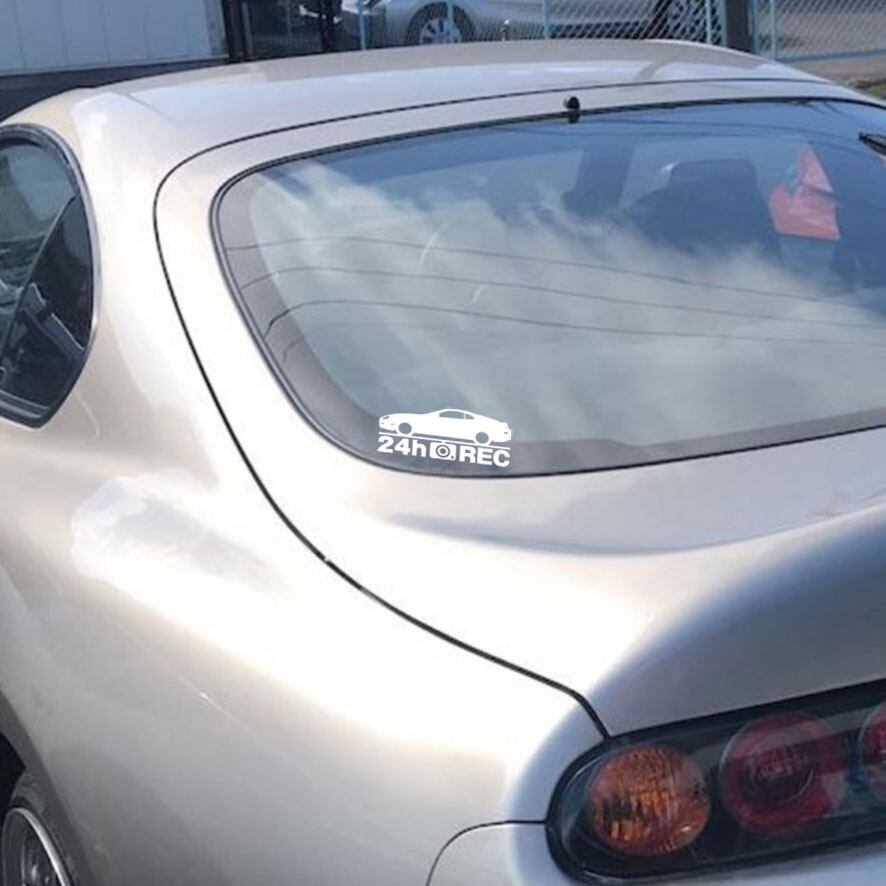 トヨタ スープラ【80系】前期型 24時間 録画中 ステッカーとなります。 このステッカーは転写シールとなっておりますので、車両後部のウィンドウやボディなどへ直接貼り付けて頂けます。 デザインに関してはプニテックオリジナルで、スープラに似合うシンプルで可愛らしいデザインとなっております。 近年、煽り運転や車上荒らしなども多くなり、それらに関する事件や事故が多発しております。 ドライブレコーダーやセキュリティシステムを既に設置済みの方はもちろん、まだ対策していない方もあらかじめ予防として車両後部へ貼って頂く事をオススメ致します。 ステッカーサイズは、後続車からも認識しやすい横幅約13㎝となります。 また、防水・耐久シートを使用しておりますので、長期間使用可能となります。 カラーは、多彩な車種に合わせやすい【ホワイト】【ブラック】【ゴールド】【シルバー】【プリントタイプ】からお選び下さい。 【発送・送料に関して】発送は普通定形郵便にて発送させて頂きます。送料は弊社で負担させて頂きますので、ご購入者様は無料となります。 ※出品しております車種は、全てベースとなるグレードを製作しております。 ※リクエストを頂いた車種を順次製作予定ですので、ご希望の車種などございましたら、お気軽にお申し付け下さい。