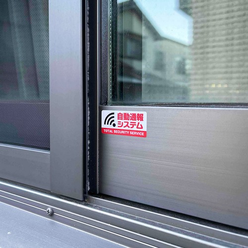 防犯対策ステッカー01となります。 近年、住宅等に侵入して金品等を盗む空き巣や侵入窃盗などの強盗事件が多発しております。 こちらのステッカーをドアや窓ガラス周辺にお貼り頂く事で、「自動通報システム」という文言が泥棒の目に入り、1つの抑止力となる事が考えられます。 既に警備会社等に加入されている方も、自宅の周りなどに追加で貼って頂く事で更なる防犯対策が期待できます。 サイズにつきましては横幅約4.9cm、縦幅約2.2cmとなり、10枚セットでの販売となります。 また、耐久シートを使用しておりますので、長期間使用可能となります。 こちらの商品は、プニテック専売オリジナル商品となっております。 【発送・送料に関して】発送は普通定形郵便にて発送させて頂きます。送料は弊社で負担させて頂きますので、ご購入者様は無料となります。